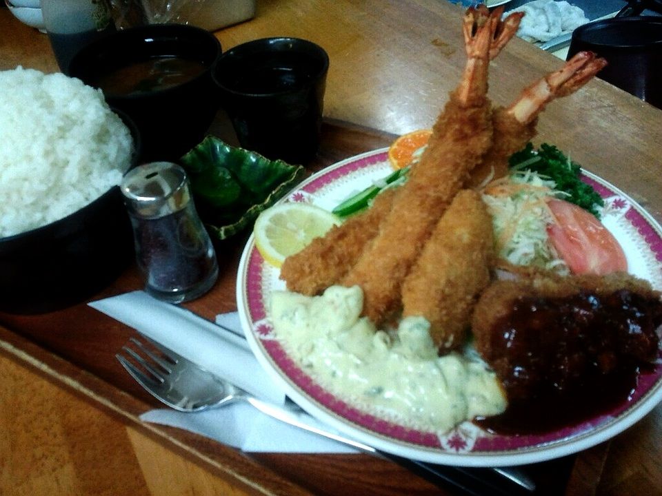 「食事ハイジ」 ☆デラックスミックスフライ定食! 2013年01月24日 19:38 こんばんは(^-^)/ ゆみこです★ 今日は、ハイジで1番リッチなメニューを紹介しちゃいます*\(^o^)/* その名も…… デラックスミックスフライ定食! でもって、お写真こちら! 大海老フライ2尾!白身魚フライ!みそヒレカツ!がドドーンと乗っかっております٩̋(๑˃́ꇴ˂̀๑) ちなみに写真のご飯は、大盛りです♡ 私も食べたい!!(笑) いつもこのメニューが出ると羨ましくてたまらないゆみこでした⋆›◡ु‹⋆笑 「「食事 ハイジ」 本店|グルメランチ 洋食・定食カフェレストラン」カテゴリの最新記事 タグ :#大海老フライ#自身魚フライ#みそヒレカツ#デラックス#ミックスフライ定食#大盛り#食事#ハイジ < 前の記事次の記事 >